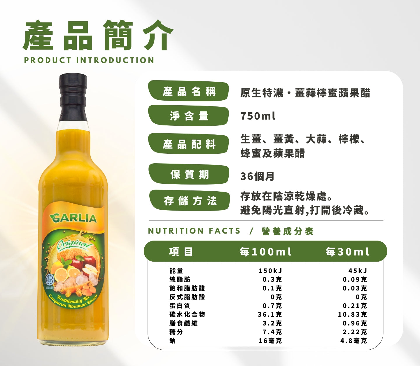 GARLIA 加利雅 - 原生特濃・薑蒜檸蜜蘋果醋