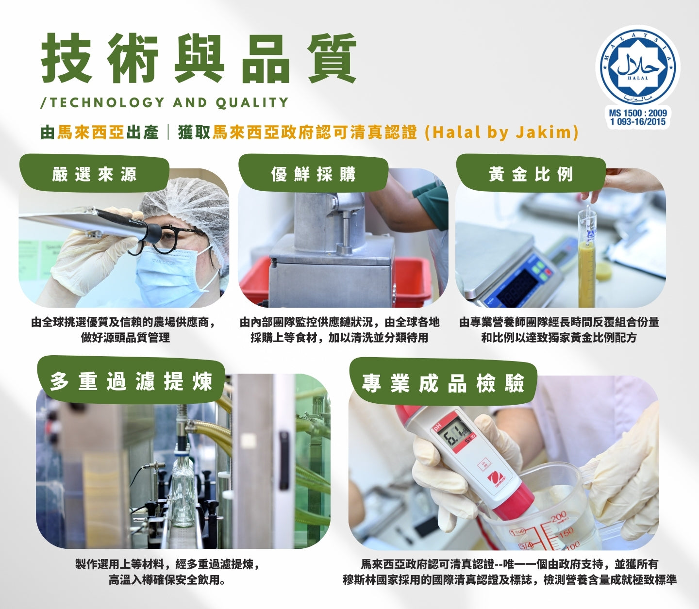 製作選用上等材料,經多重過濾提煉,高溫入樽確保安全飲用。